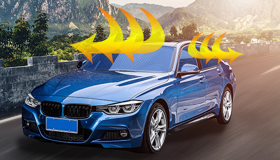 采用先进磁控溅射技术和纳米涂布工艺,溅射到PET基材上,当太阳光照射到车窗时,车膜能吸收和反射大量太阳能热量,从而起到隔热的作用。